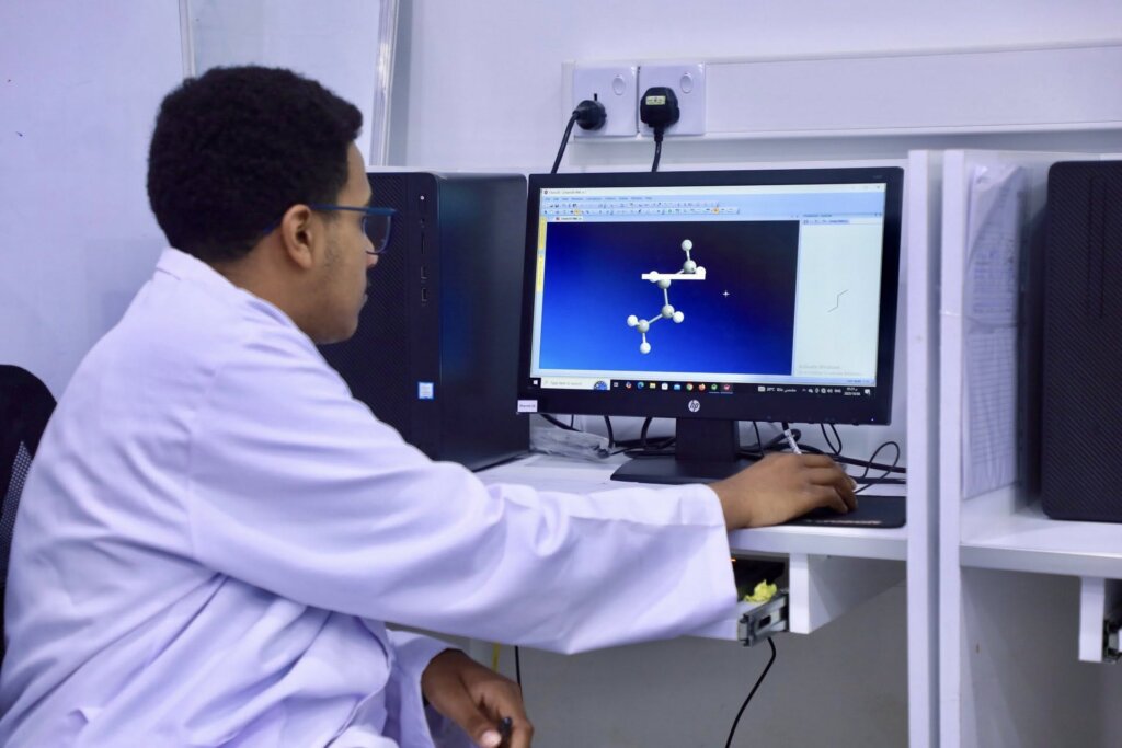 طلاب دكتور صيدلة يجرون تدريبات عملية في الكيمياء العضوية